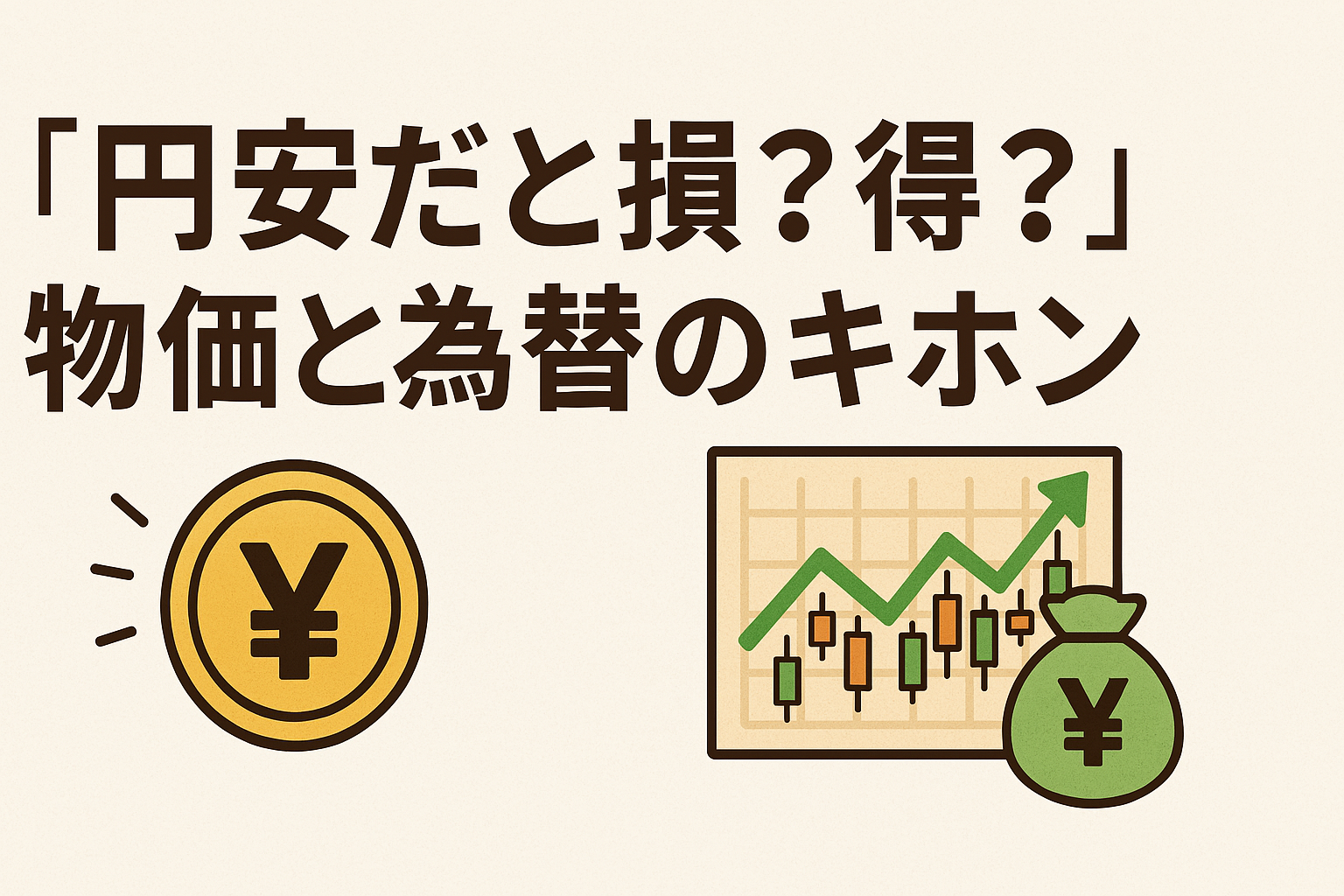 ニュースとか見てても、「円安が進んで大変だ!」って言ってる人もいれば、「円安は日本経済にとってチャンスだ!」って言ってる人もいて、「どっちやねん!」ってツッコミたくなる時、私もあるもん(笑)。